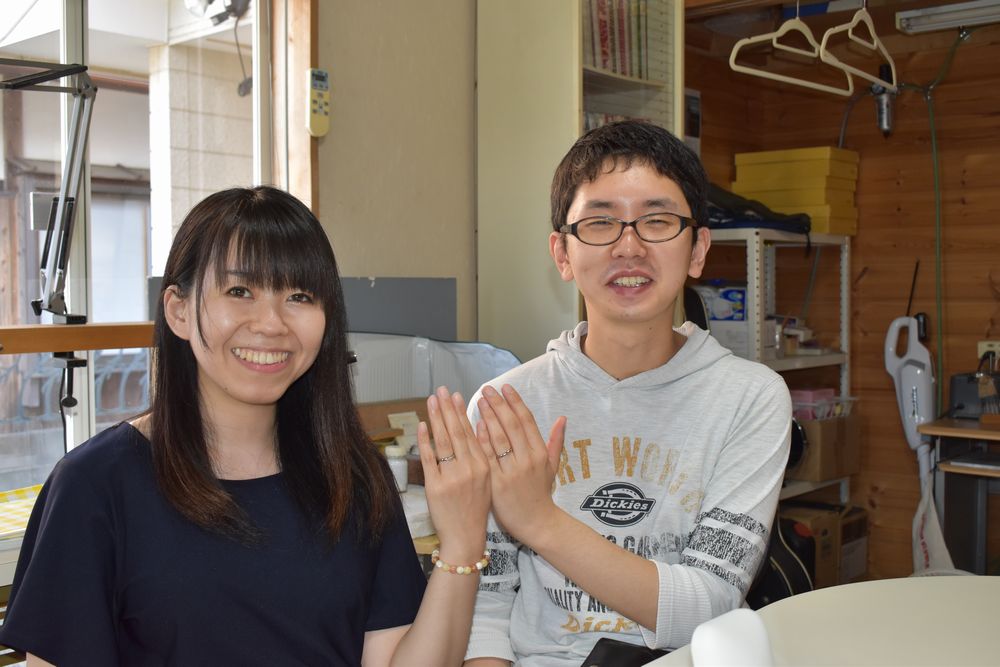 おふたりは結婚指輪についてネット検索するうちに指輪を手作り出来ることが分かり、しかも地元にある工房南十字星でそれが出来ることを見つけてご来店下さいました。