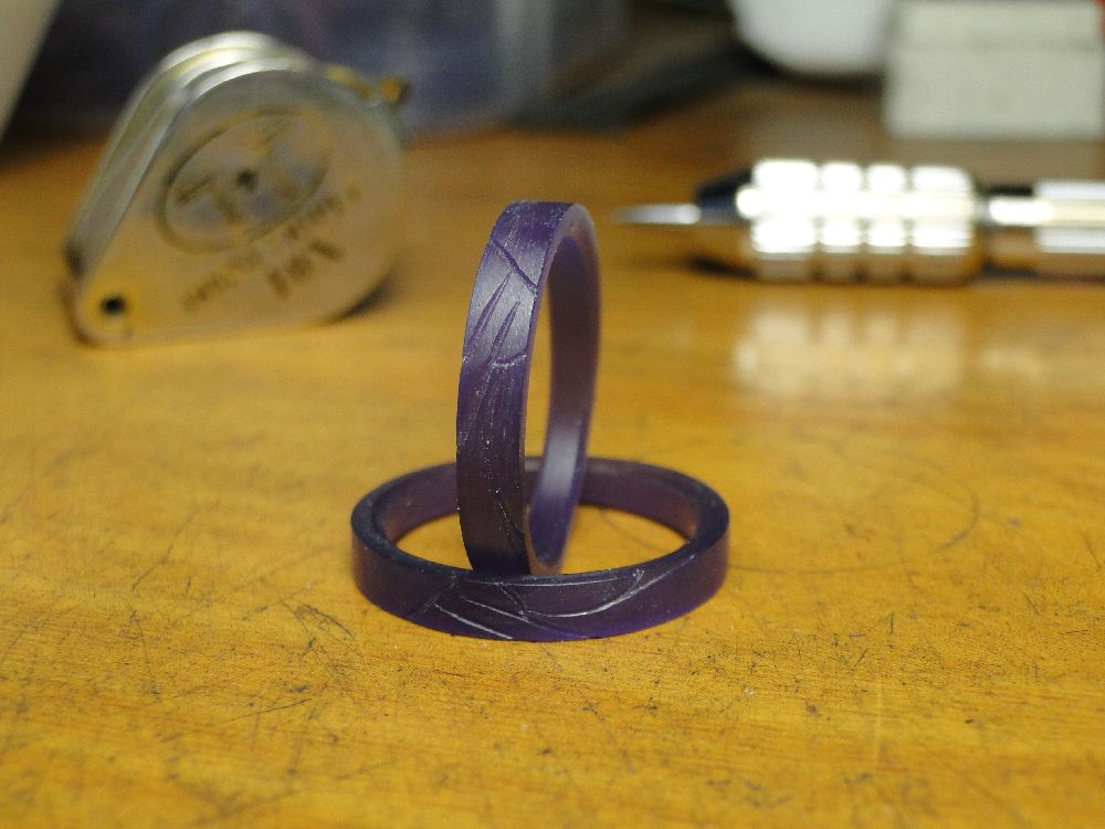 おふたりが制作されたのは、表面にイニシャルをモチーフにしたデザインを施した平打ちリングです。