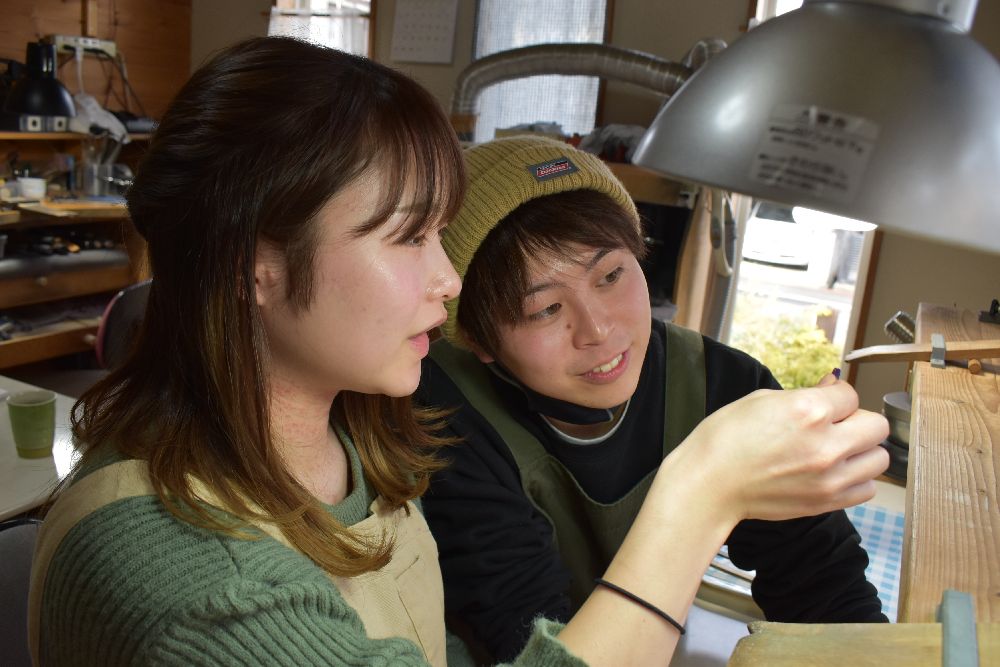おふたりが作られたのは、女性用は平甲丸、男性用は表面に斜めの峰があるデザインのマリッジリングです。