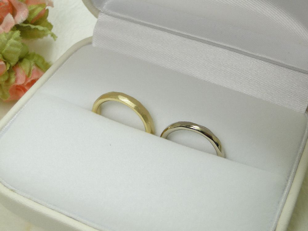 おふたりが制作されたのは、槌目デザインの結婚指輪です。