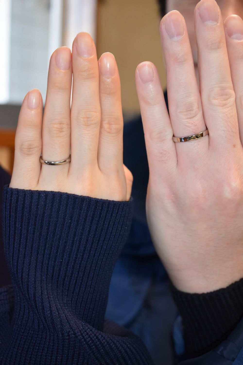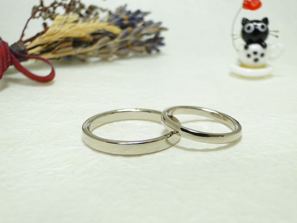 おふたりが作られたのは、女性用が平甲丸、男性用が平打ちの共にシンプルなデザインの結婚指輪です。